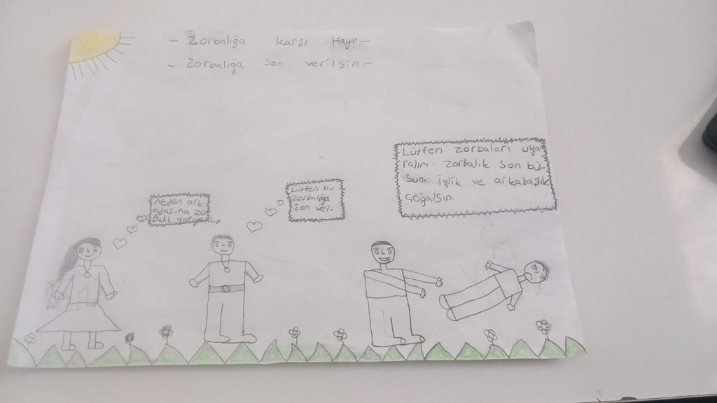 Okulumuzda zorbalığa karşı resim yarışması yapılmıştır. Yarışma birincimiz 4-A sınıfından Ecrin ÖZEVİN'i tebrik ederiz.